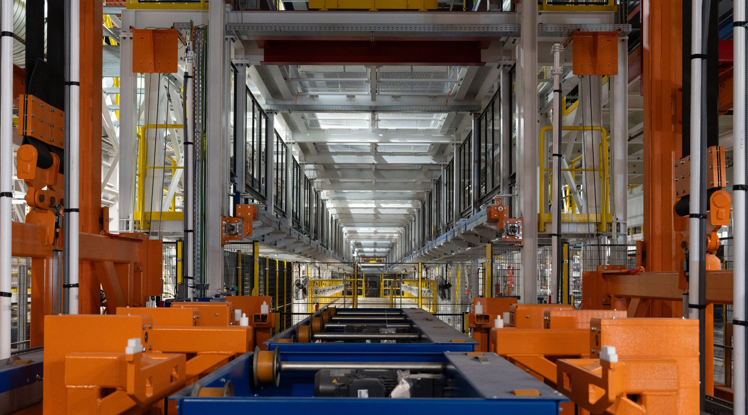 Progress continues (below) on the paint shop conveyor system and sub-systems.