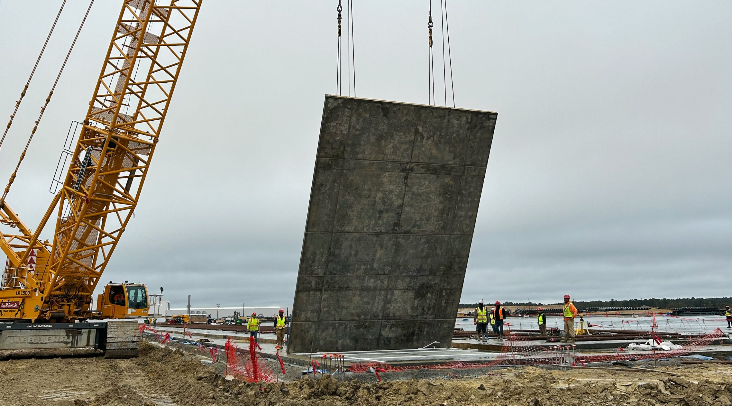 In October (photo above), we raised the first exterior tilt wall on our new supplier park structures.