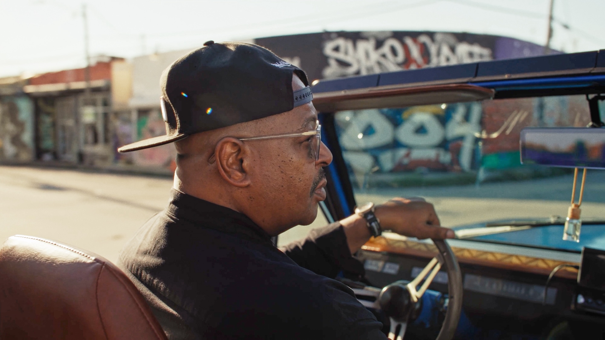 Sit behind the wheel, and you’ll notice an elegant custom dash, crafted from African mahogany. “I got an artist friend who does things with wood. It took him about two months because he had to measure it and figure out the curvature in the body. And then he carved in the dash an ode to his past: Dog Catcher, Too.
